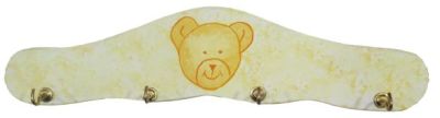 Perchero de Madera Pintado - 4 Ganchos Metalicos - Osito en el centro