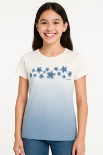 Remera Manga Corta Estampado Flor con Glitter