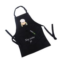 Delantal de cocina con texto en bolsillo frontal. Incluye gorro de cocinero