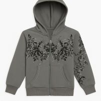 Campera de Algodon Con Friza y Capucha Estampado Flores