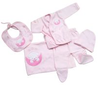 Set de 5 piezas algodon (mantita, 1/2 osito, batita gorro, babero)