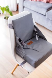 Silla Booster para comer, compacta y liviana para llevar a todos lados como un bolso.